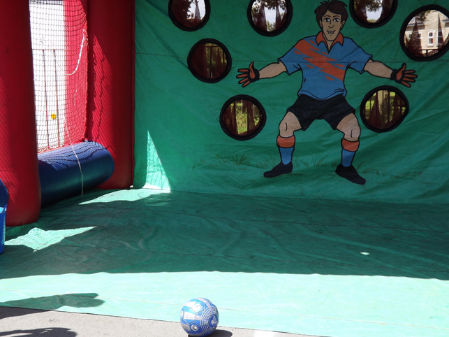 The children ride and and all can take a pot shot at goal. |