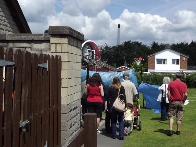 as they queue for the coconut shy |