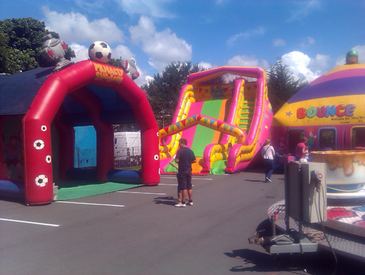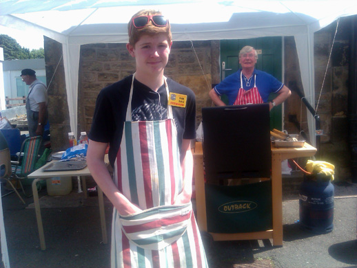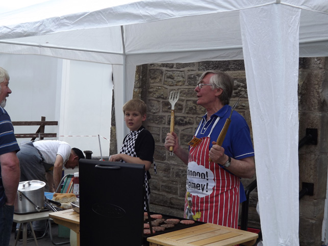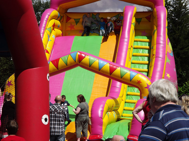 The younger visitors try out the slide whilst Tony Shaw sells the burgers. |