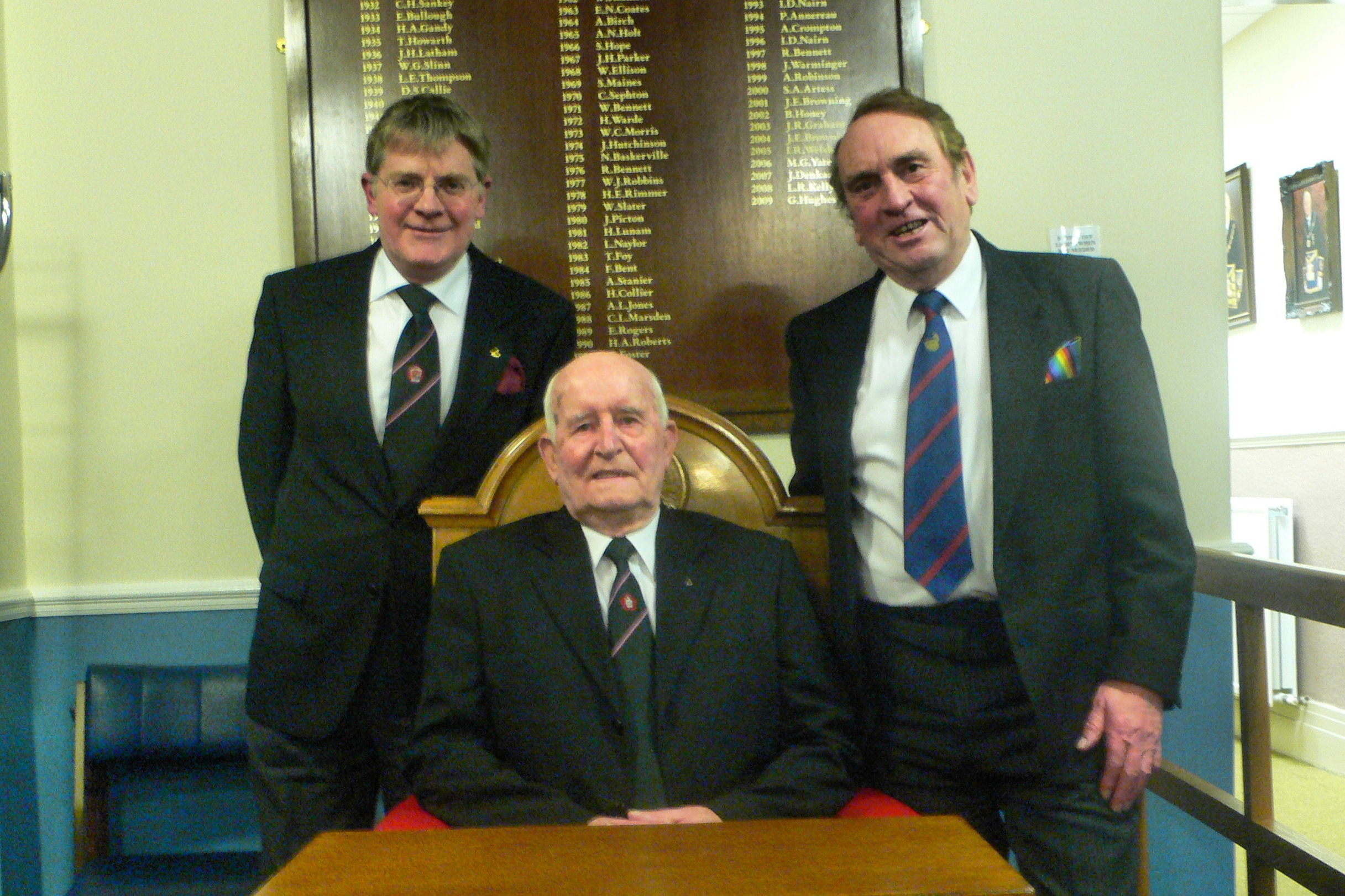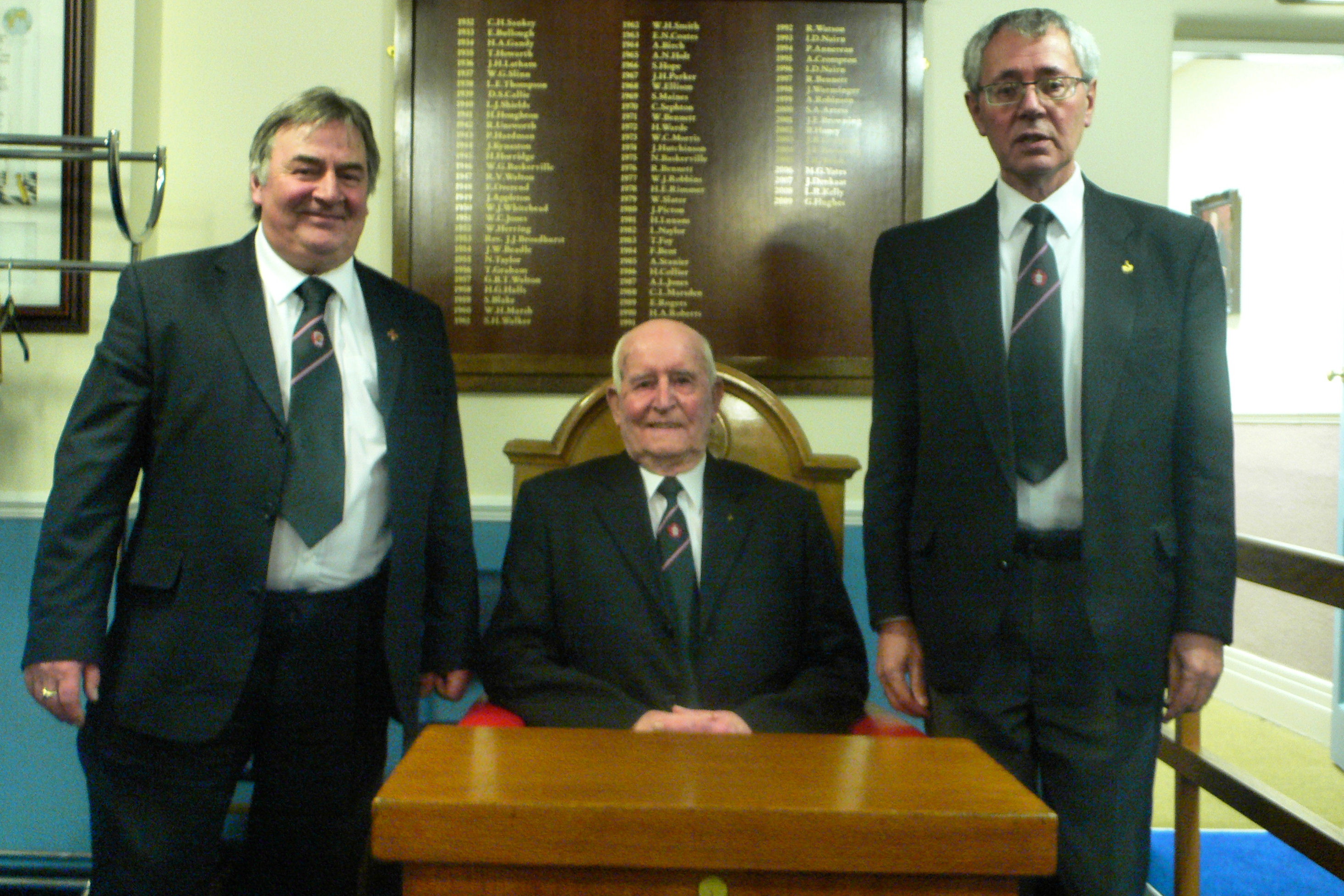 Left to Right, Bro E. T. Waites Senior Warden, W.Bro G. Walsh Worshipful Master and |