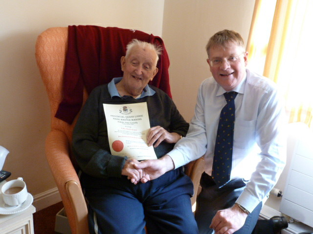 W Bro Stanley Gregson was unable to attend Provincial Lodge earlier this month (May 2012) to receive his promotion to P.Prov.G.S.W. due to his poor health (well at 90 you can be excused!!). |